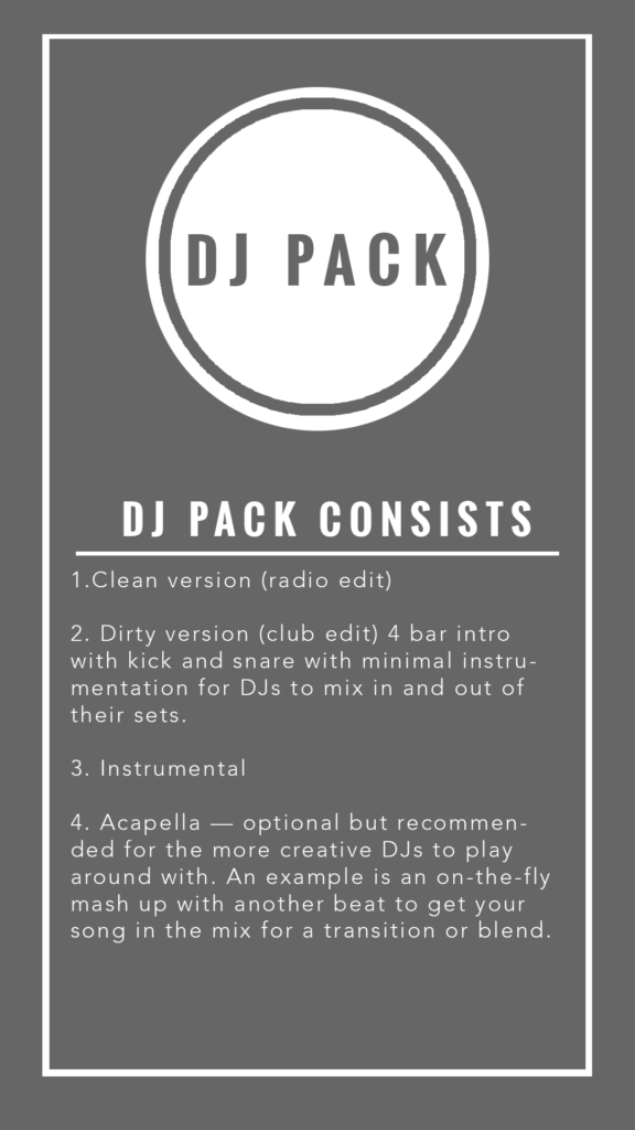 Download the EPK to receive an exclusive DJ Pack. This includes the original song, the radio edit, the DJ extenders and the instrumentals (Beats).